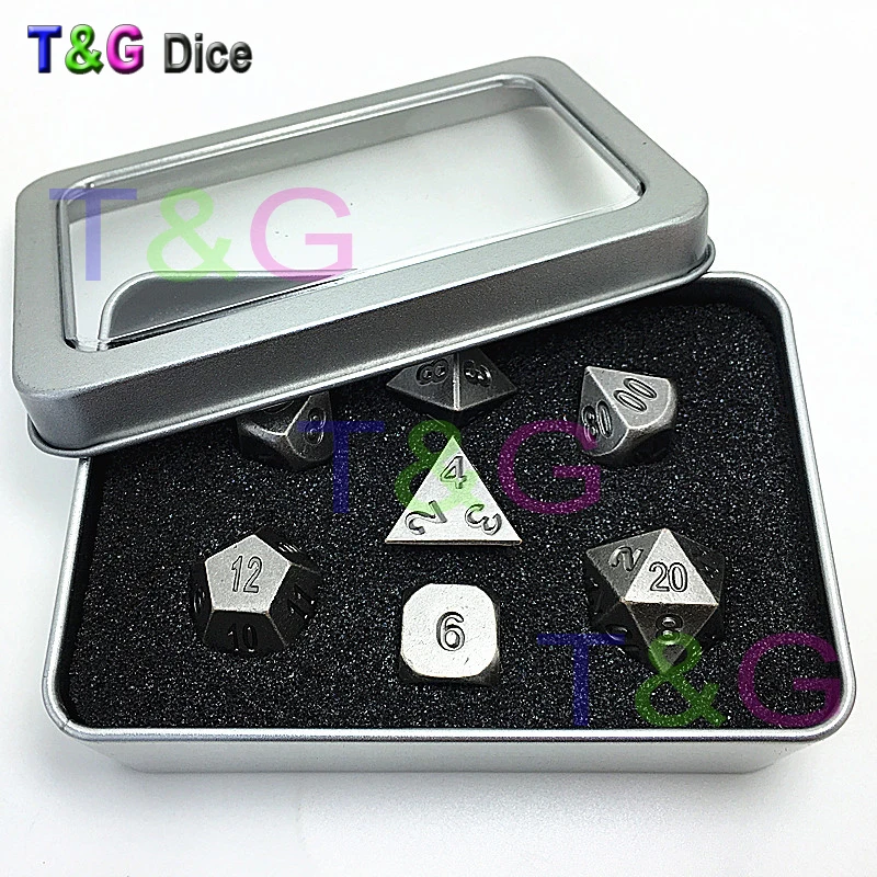 Хорошо Цена для Высокое качество Новый металлический 7 Dice набор d4 d6 d8 d10 d % d12 d20 для настольной игры Rpg Dados Juegos de mesa подземелья & dragon dice
